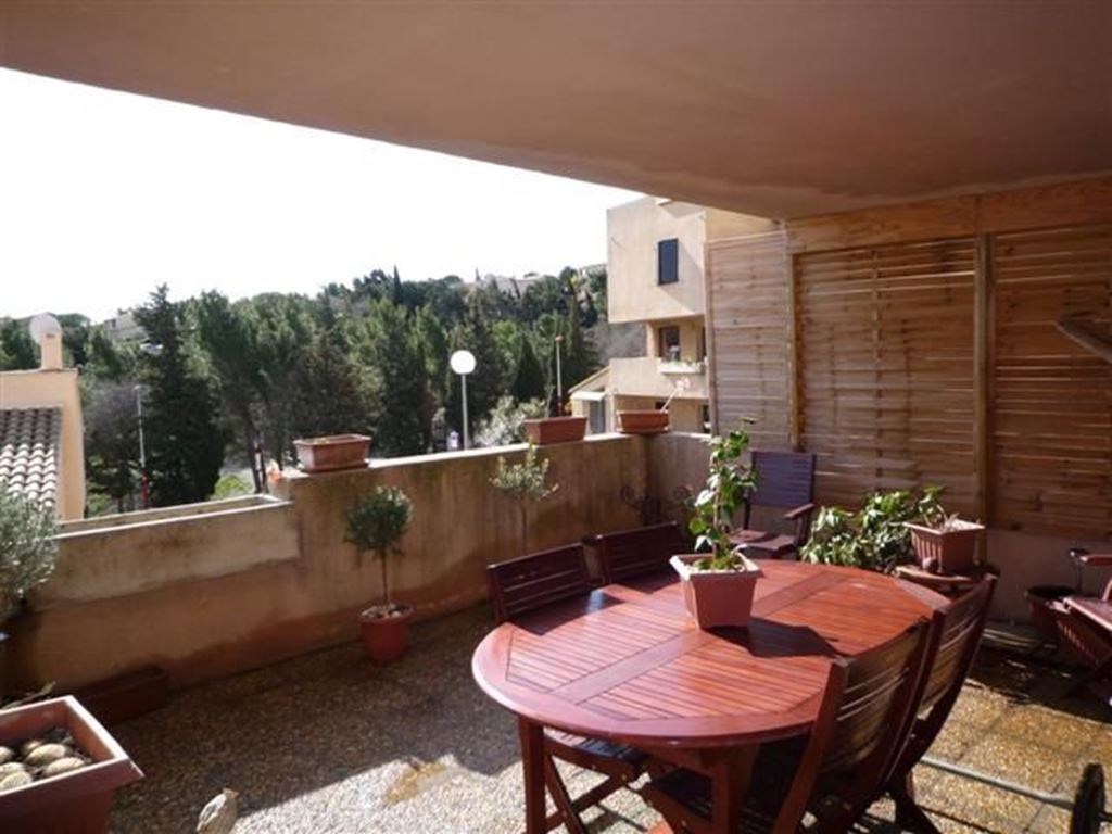 Appartement de 64 m² avec 26m² de terrasse situé a mi hauteur des Hauts de Narbonne, au calme et à l'abri du vent dominant.
