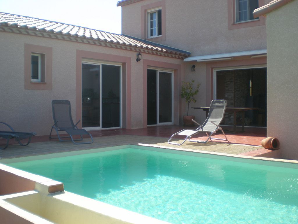 Superbe villa 4 faces de 150m2 habitables avec piscine, sans vis à vis, et garage, sur un terrain de 519m2, dans un cadre idyllique à 15km de Narbonne, proche toutes commodités.