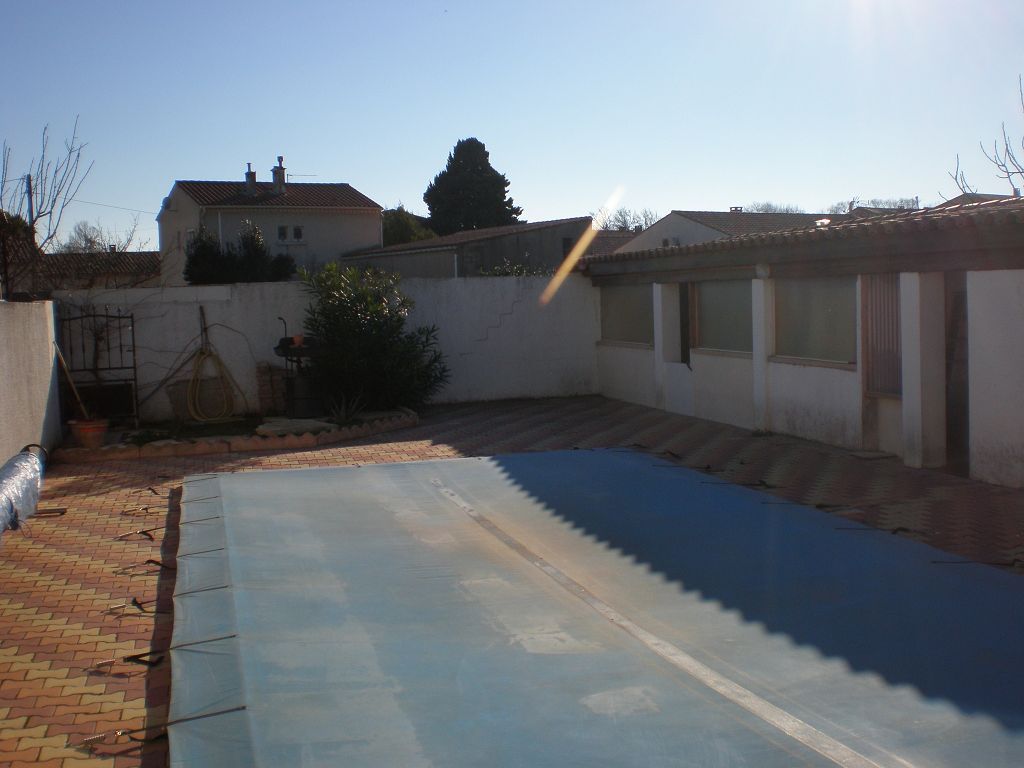 Jardin entretenu et arboré avec piscine, véranda, puits, barbecue, espace potager.