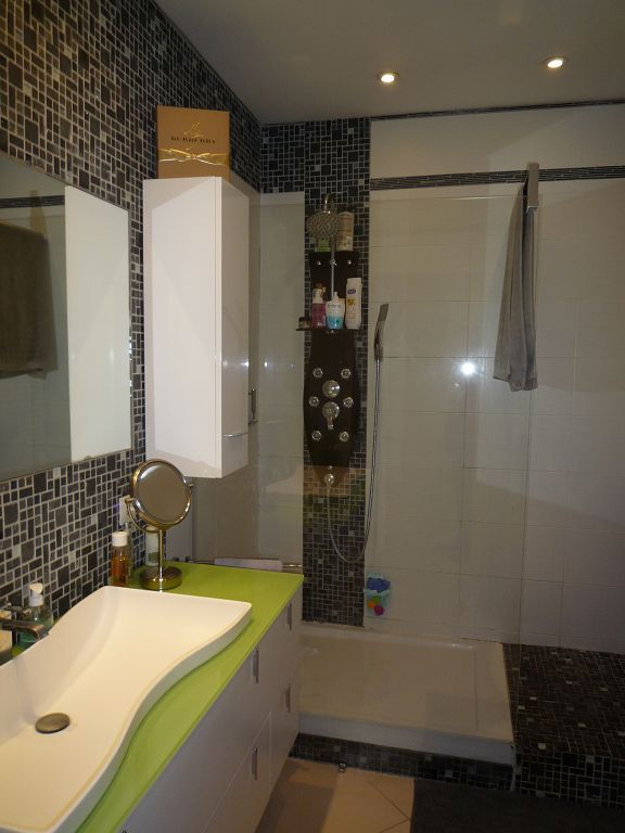 Grand espace de vie ouvert et lumineux, cuisine équipée, 3 chambres, salle de bain avec douche italienne, wc indépendant,